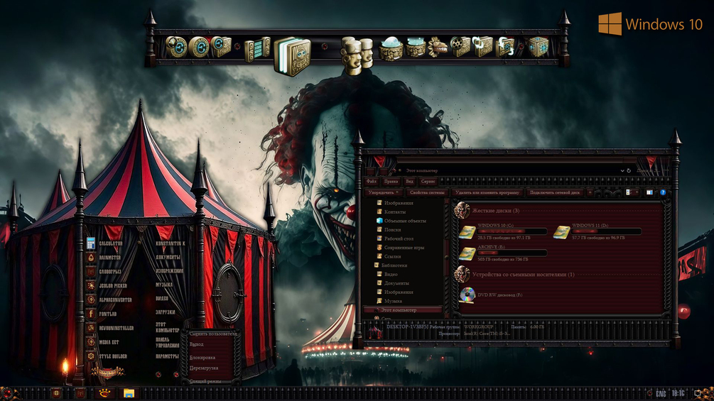 It is made with special awe and love for fans of the system interface design and will turn your desktop into an unprecedented attraction full of the finest details, and original sounds and additions.They will provide the effect of being present in the world of your favorite movies and games.